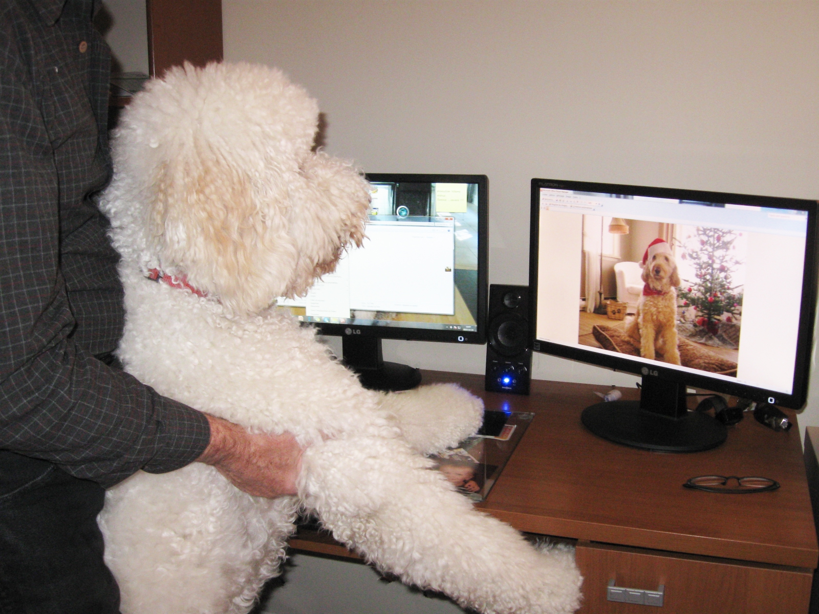 Cette famille éparpillée un peu partout au Québec ne se fréquente pas souvent, sauf quand le hasard s’y met. Et c’est ce qui est arrivé il y a quelques jours alors que Mélodie faisait sa promenade quotidienne. Sur le trottoir, un chien qui lui ressemble « comme deux gouttes d’eau » s’en venait en sens inverse. Rien, jusqu’à la dernière minute ne laissait entrevoir une rencontre spéciale. Ce n’est qu’à deux pas de Mélodie que la promeneuse à l’autre bout de la laisse la regarda attentivement, s’enquit de son nom, puis jeta un coup d’œil sur sa propre femelle Goldendoodle nommée Maya. Après un instant de réflexion, elle dit: « étonnant, n’est-ce pas, elles ont toutes les deux le même regard ».